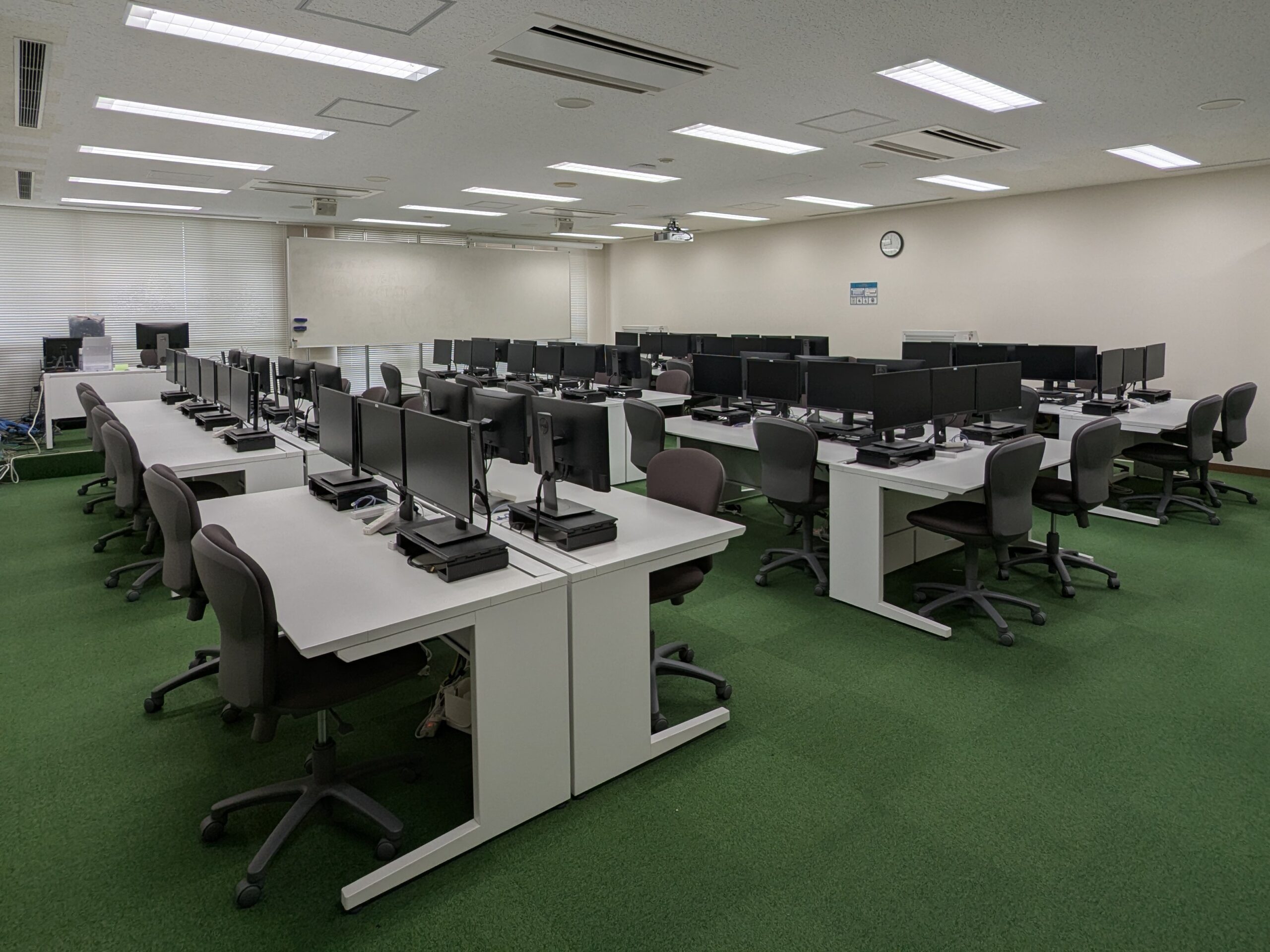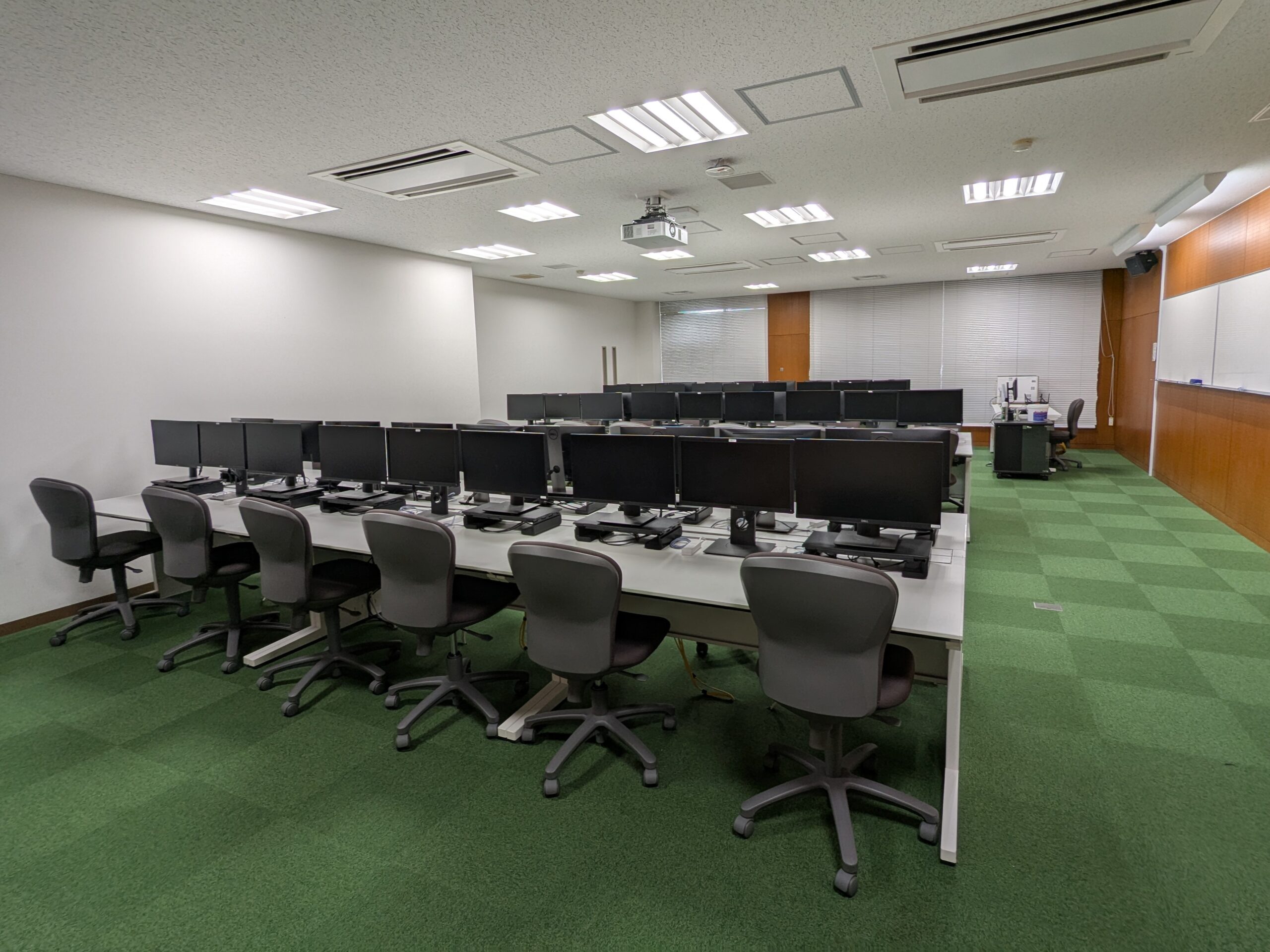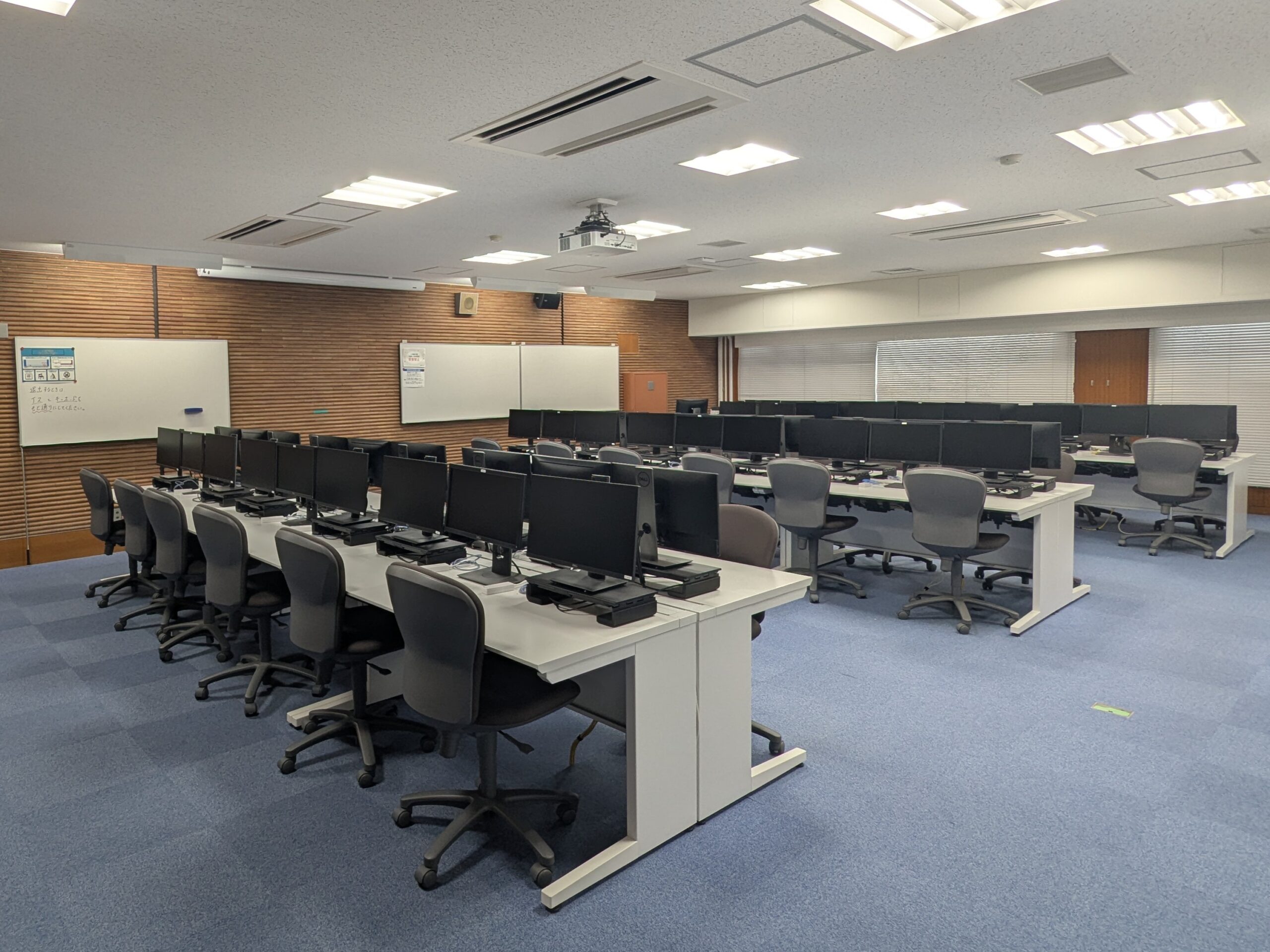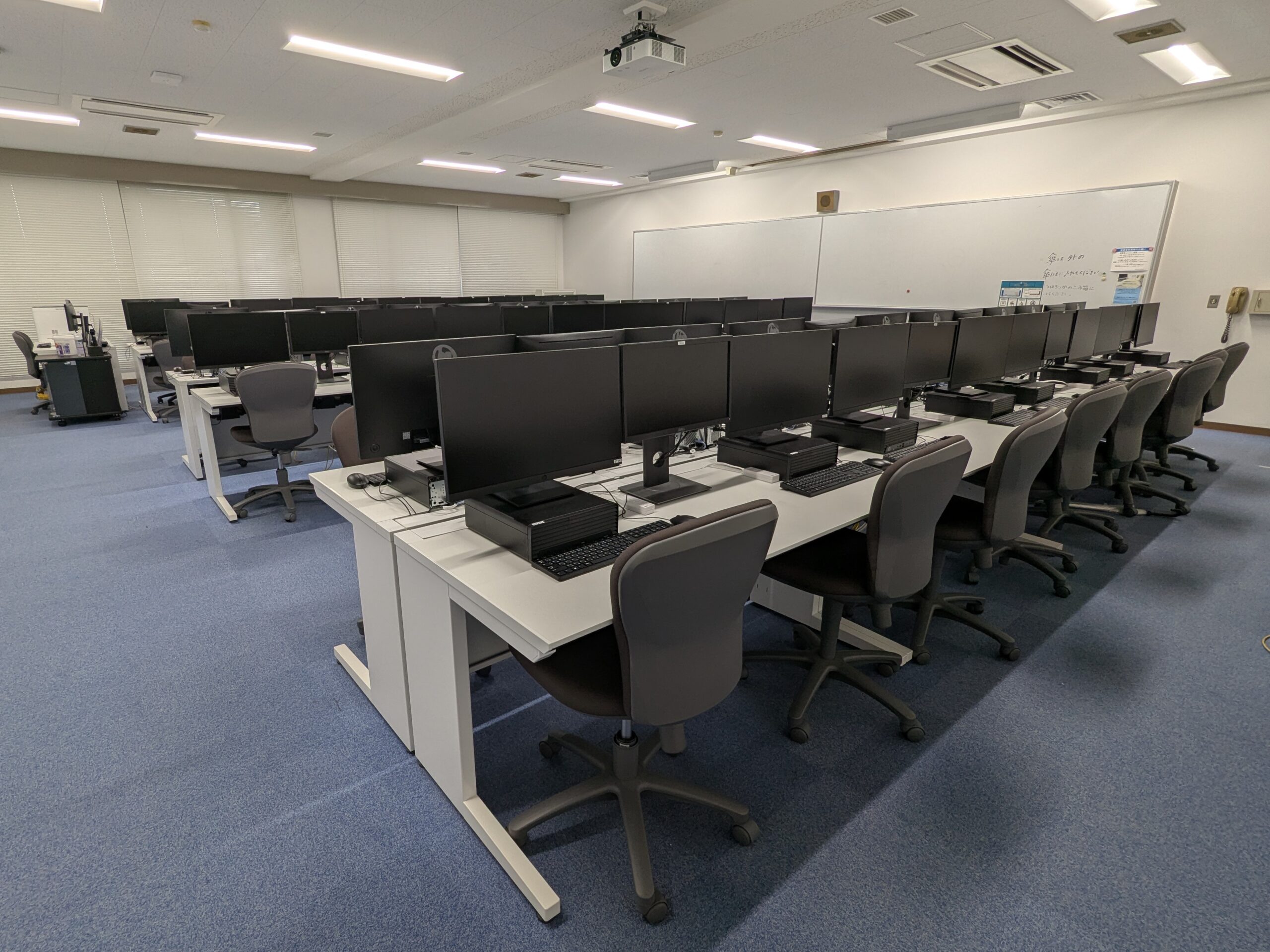 学生席に設置パソコンがある演習室